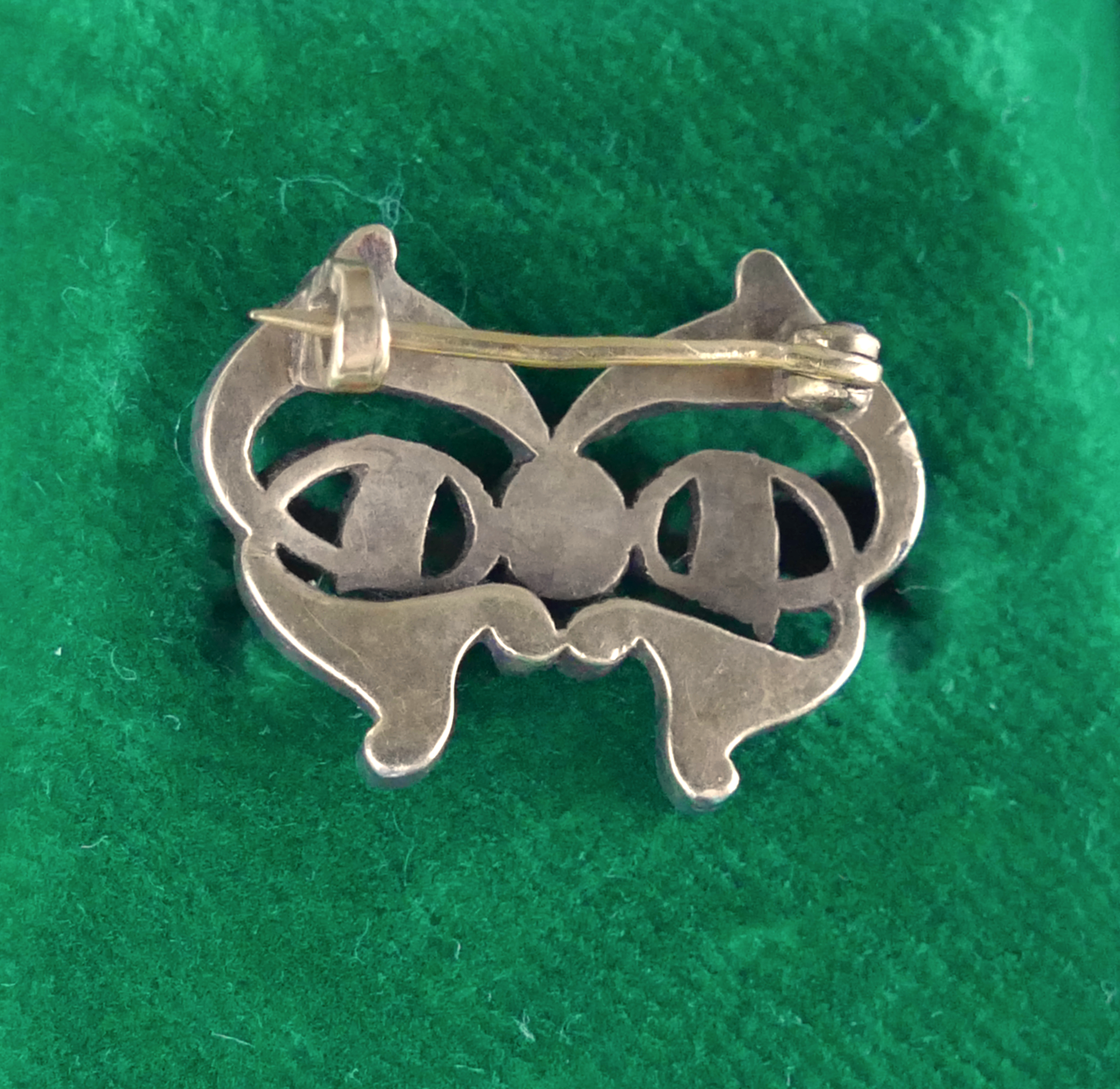The brooch is unmarked but shows traditional craftsmanship of its time. It remains in very good condition considering its age.