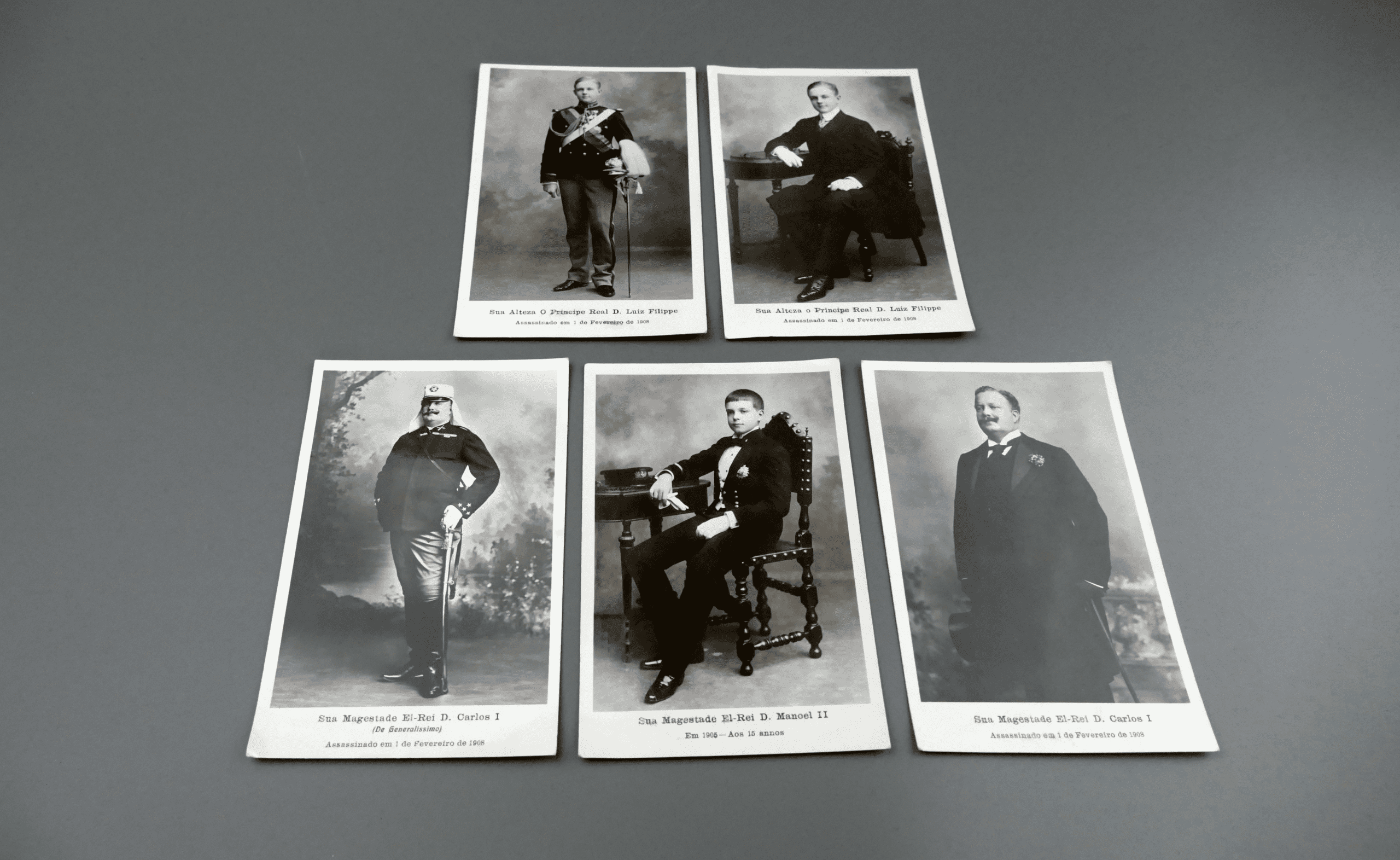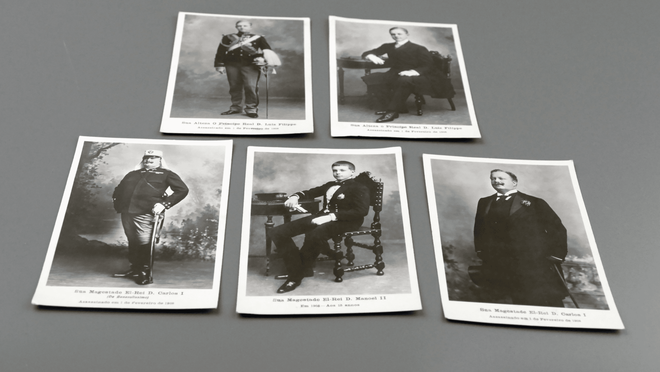 A compelling set for collectors of Portuguese history, royal memorabilia, and early photographic ephemera—also beautiful framed as a sober, historically charged gallery wall.