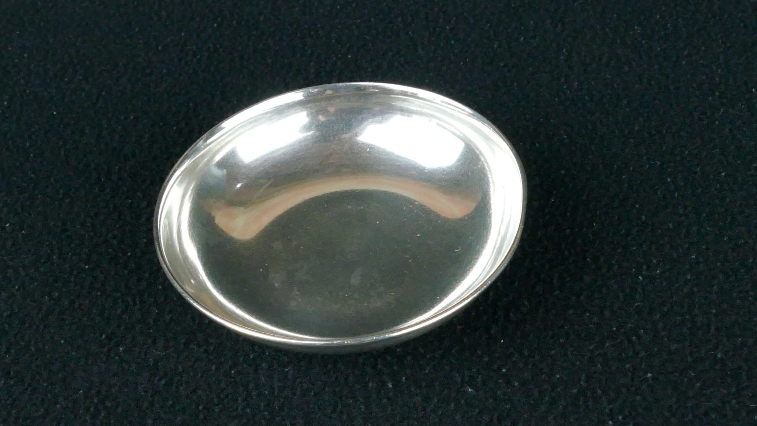 A charming Portuguese hallmarked silver dish from the old manor house collection. Elegant in its shallow form and beautifully understated, this piece carries the quiet character of age and provenance. It measures 9.5 cm in diameter and 1 cm in height, and weighs 49.74 g (0.04974 kg). A lovely antique accent for a dressing table, desk, or refined table setting, and a discreet example of traditional Portuguese silverwork.
